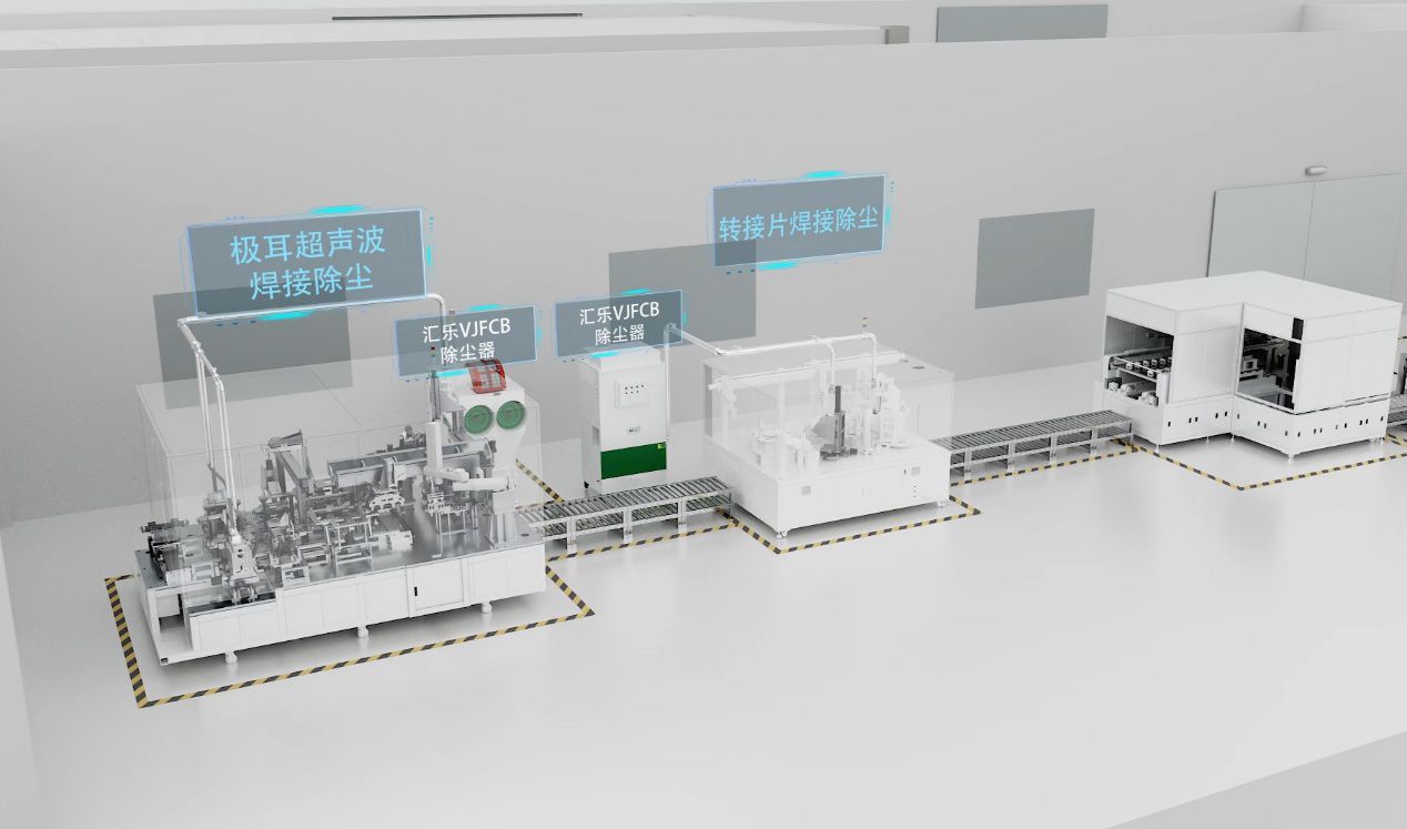 鋰離子電池的電芯在制作過程中,需要將電芯箔片焊接在一起形成電芯,并把極耳箔片焊接在一起形成極耳。因為極耳箔片很薄,僅有0.01mm左右,因此傳統一般通過超聲波焊接。在焊接過程中會產生細微顆粒粉塵(銅、鋁粉),若不及時處理會影響產品質量(電池短路等)及污染車間環境。同時,轉接片焊接起到連接蓋板及電芯的作用,焊接質量直接影響整個電芯的性能。針對此類工況,可選用我司VJGFB系列除塵器。