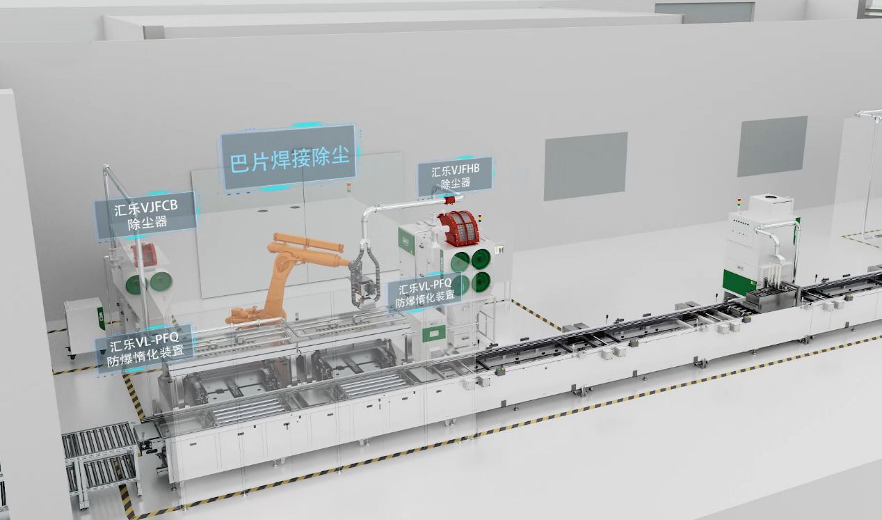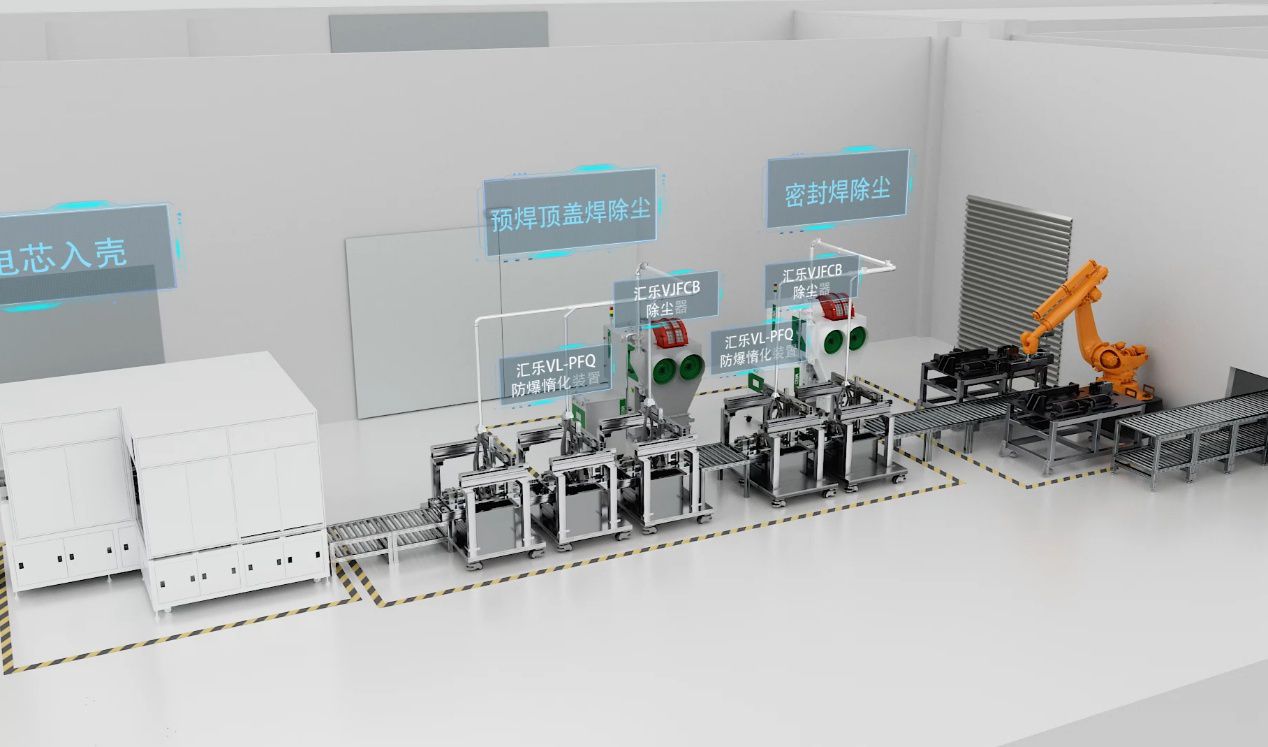 電芯入殼前需要進行電壓測試,需要進行出吸塵處理,其次就是入殼的預焊煙塵處理。同時,電芯頂蓋封口焊接處飛濺焊渣、煙塵,粉塵量大,粒徑小,燃爆危險度高。另外,將電芯封裝進電池殼體后,一般會在殼體上留下一個注液孔,需要進行焊接密封。針對此類工況,可選用我司VJGFB系列除塵器。