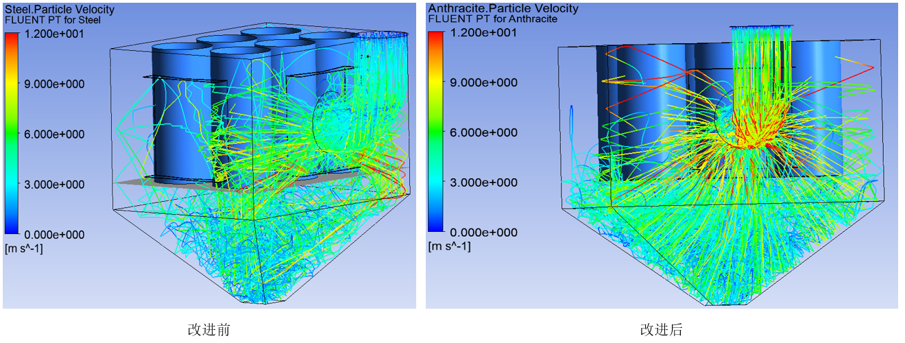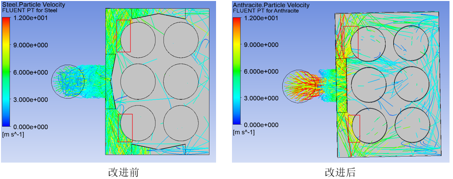 圖3.5 改進前后顆粒跡線圖